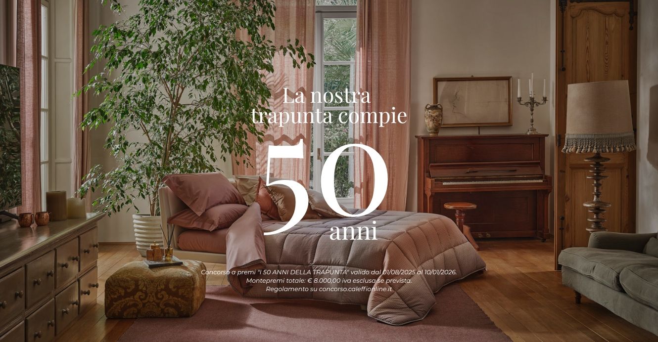 La nostra Trapunta compie 50 anni, acquistane una della nuova collezione Autunno Inverno 25/26, indicate dall’icona e prova a vincere una vacanza alle Maldive.